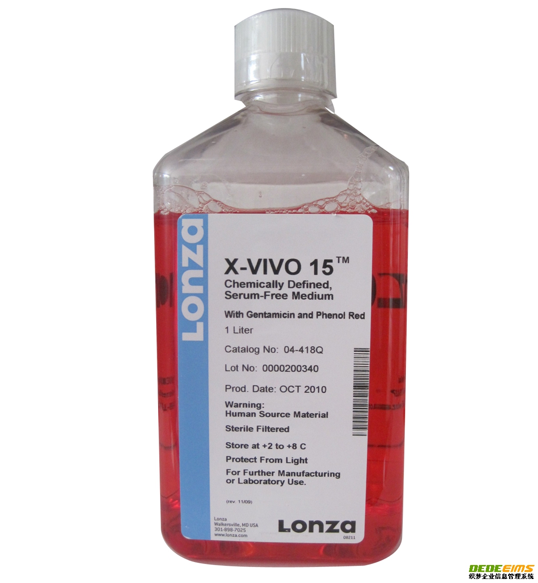 X-VIVO 15 限定化學成分無血清培養基, 適合TIL增殖,支持由外周血和人腫瘤分離純化的CD3 +細胞的增殖,也可用來維持人單核細胞,巨噬細胞及細胞系,淋巴細胞,粒細胞和NK細胞生長