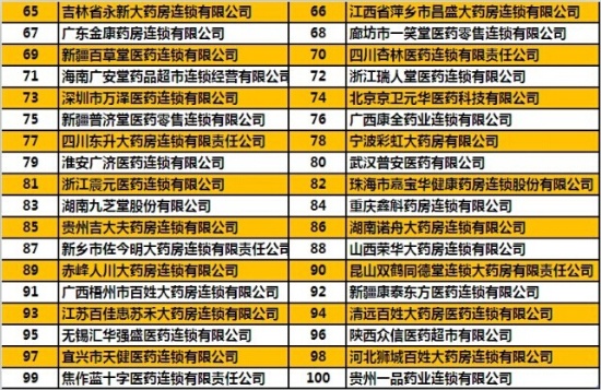 2014年8月15日,在2014年西普會(huì)(中國(guó)藥品零售業(yè)信息發(fā)布會(huì))上,新一年度的“中國(guó)藥品零售企業(yè)競(jìng)爭(zhēng)力百?gòu)?qiáng)榜”揭榜。前三甲分別為老百姓大藥房、云南鴻翔一心堂、國(guó)大藥房。 2014中國(guó)藥品零售企業(yè)競(jìng)爭(zhēng)力百?gòu)?qiáng)榜: