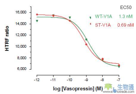 圖4:抗利尿激素在COS-7細胞中誘導產生肌醇-1-磷酸(IP-One)
