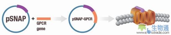 圖2:SNAP與GPCR在N端形成融合蛋白。首先構建編碼GPCR和SNAP的質粒,然后轉染入宿主細胞。