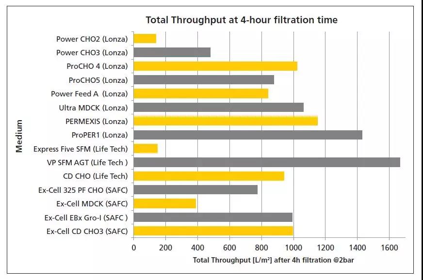 截留性能 表1總結了使用新型膜進行測試的截留數據。膜的病毒截留性能同下游工藝應用中使用的過濾器相當。無包膜細小病毒MVM的截留量超過4個對數值。分析方法檢測不到濾液中的MVM。可合理預期該膜會截留比細小病毒更大的潛在污染因子。 不同化學限定成分細胞培養基的膜通過量 膜的通過量采用了三個不同供應商的15種培養基來測定。圖2表明了在2bar壓力下,4小時的培養基處理載量因培養基組分不同而差別很大。例如,Lonza Power CHO2相對較快地造成了膜堵塞,而Lonza ProPER1培養基似乎完全不堵膜。 對于一些商業化細胞培養基,使用串聯0.1微米過濾器顯著提高了除病毒過濾膜載量(7)。但僅部分培養基可行,有些則沒起作用。諸如泊洛沙姆等保護劑大幅降低了過濾流速(10)。 對于一些商業化細胞培養基,使用串聯0.1微米過濾器顯著提高了膜通過量。 降低泊洛沙姆濃度或在添加至培養基以前過濾能大幅提高過濾器的過濾量。業界應該展開更多研究,從而充分了解不同培養基組分對培養基過濾器過濾性能的影響。根據本研究,可設計出一種既能改善過濾性能又不影響后續細胞培養工藝的培養基。不過,研究表明,在細胞培養基通常的4小時過濾中,開發的新膜通常過濾載量約1000 L/m²。因此,對于批量制備培養基,這種新膜是經濟上可行的辦法,同時也降低了細胞培養基的病毒污染風險。 結論 在本文中,作者介紹了一種新的病毒截留膜,上游工藝工程師可使用它來過濾化學限定培養基,從而降低風險。此外,作者已經證明該方法可截留4個Log以上的非包膜細小病毒。當過濾一系列不同型號的化學限定培養基時,該膜的通量較高,生物制藥公司能夠在上游工藝中使用這種膜,而且不會對工藝成本造成不利的影響。該膜有可能成為基于風險控制來最大程度地降低病毒污染事件的重要環節,同時提高生物制藥公司的生產能力。 作者簡介 Anika Manzke是病毒清除產品經理,Birte Kleindienst是病毒清除產品初級經理,二人均供職于Sartorius Stedim Biotech。 參考文獻 1.P. W. Barone, PhD, “Lessons Learned from the Consortium on Adventitious Agent Contamination in Bio Manufacturing,” Viral Safety for Biologics, Cologne, June 21, 2016. 2.V.Bethencourt,Nature Biotechnology 27, 681 (2009),www.nature.com/nbt/journal/v27/n8/full/nbt0809-681a.html 3.O.-W. Merten, Cytotechnology 39, 91–116 (January 9, 2003). 4. M. Moody, PhD, “MMV Contamination–A Case Study: Detection, Root Cause Determination, and Corrective Actions,” PDA/FDA Adventitious Viruses in Biologics: Detection and Mitigation Strategies Workshop, Bethesda, Maryland, Dec. 1-2, 2010. 5. Jim Skrine, “A Biotech Production Facility Contamination Case Study–Minute Mouse Virus,” PDA/FDA Adventitious Viruses in Biologics: Detection and Mitigation Strategies Workshop, Bethesda, Maryland, Dec. 1-2, 2010. 6. Linda Hendricks, “Case Study of Apparent Virus Contamination in Biopharmaceutical Product at Janssen,” PDA/FDA Adventitious Viruses in Biologics: Detection and Mitigation Strategies Workshop, Bethesda, Maryland, Dec. 1-2, 2010. 7.B. Kleindienst, “Proof of Concept–The first virus retentive membrane for risk mitigation in upstream,” Viral Safety & Raw Materials for Biologics, Cologne, June 22nd, 2016. 8.G. Gauvin and R. Nims, PDA Journal, Vol. 64, No 5, 432-435, 2010. 9.B. Hansmann, V. Thom, A. Manzke, “Contamination Risk Mitigation in Cell Culture Media Preparation,” Virus & TSE Safety Forum, Lisabon, June 9-11, 2015. 10.A. Meyer, “Risk Mitigation in Media Preparation—Current Possibilities and Future Trends,” PDA Virus & TSE Safety Forum, Berlin, June 5, 2013. 11.Thomas R. Kreil, “Virus Safety—A Look into the Entire Process Raw Materials, Upstream, Downstream,” European Upstream and Downstream Technology Forum Goettingen, September 8-10, 2014. |