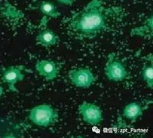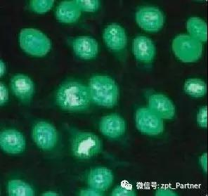 2. 熒光染色法。將細胞接種于蓋玻片上,在細胞未長滿前取出玻片,用不含酚紅的Hank's液漂洗后,再用1:3醋酸甲醇固定10min,然后用生理鹽水漂洗,置于用生理鹽水配制的 Hoechst 33258(濃度為50ul/ml)中染色10min,熒光染料將支原體內的DNA著色,染色后用蒸餾水洗1~2min,滴加pH5.5磷酸緩沖液數滴,然后置熒光顯微鏡下觀察。鏡下散于細胞周圍或附于細胞膜表面的亮綠色小點為支原體。