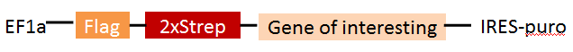 服務內容: 1.構建融合N端 2*strep tag+Flag tag或者C端 6*His tag+Flag taāg的目標蛋白真核表達載體或者病毒載體。 2.載體瞬時轉染靶細胞或包裝病毒感染靶細胞。 3.Strep-Flag或6*His-Flag兩步分別純化目標蛋白復合體。 4.LC-MS-MS鑒定與目標蛋白相互作用的已知或未知蛋白。