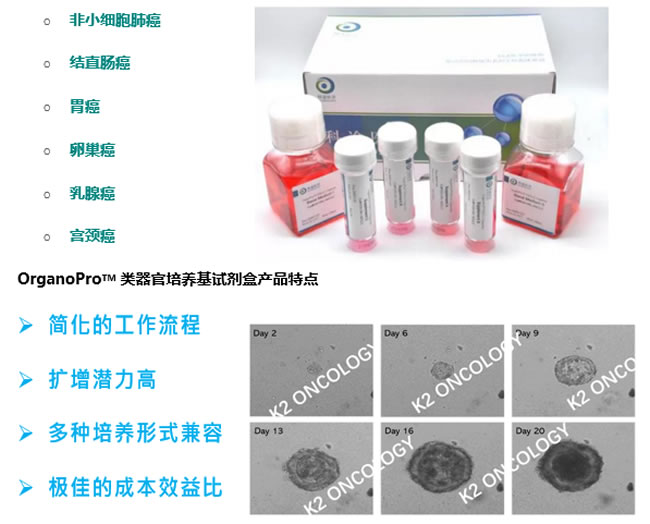 OrganoProTM 類器官培養基試劑盒產品系列是科途醫學基于 Simumatrix 技術平臺,通過工業化高通量篩選,針對中國高發的腫瘤類型進行培養基優化篩選而開發類器官培養基產品。目前可進行商業化銷售的類器官培養基試劑盒可適用于以下瘤種的類器官培養: