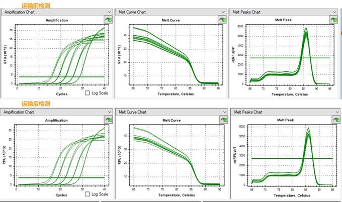 6、批次之間擴增曲線、溶解曲線重復性情況;