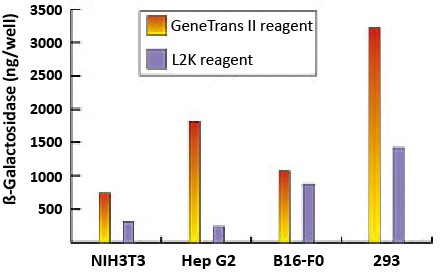 GeneTrans II 轉染試劑與領先試劑 L2K 的比較。