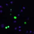 Jurkat,克隆 E6-1 細胞利用 TransIT®-Jurkat 轉染試劑盒和 pEGFP (Clontech) 在完全培養基中轉染 48 小時(綠色)。固定細胞,然后用To-Pro-3(分子探針)復染以顯示細胞核(藍色)。