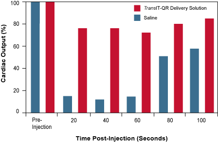 與使用普通生理鹽水注射相比,TransIT®-QR 溶液可最大限度地減少心輸出量的損失。