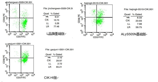 【產品名稱】 ALyS505N 無血清細胞培養基 ALyS505N 無血清細胞培養基 【產品概述】 ALyS505N 是專為細胞免疫治療研究而開發, 不含有任何動物蛋白質成分,含有重組或醫療級人類蛋白質的無血清細胞培養基。對人類外周血 T 淋巴細胞具有高增殖性,適用于 CIK、DC、LAK、CTL 等 T 細胞的擴增與活化,是細胞免疫治療用最佳培養基。 【產品特點】 1、安全性: 不含動物血清成分; 嚴格通過細菌、真菌、支原體等測試; 含有重組人類醫療級蛋白,不含異源性動物成分,無細胞毒性; 2、簡便性:可直接用于細胞培養,無需添加谷氨酰胺及營養物質; 3、廣泛性:支持 DC、CIK、CTL、LAK、γδT 及 CAR-T 等人類 T 淋巴細胞在體外擴增; 4、高效性: 對外周血 T 淋巴細胞具有高效增殖性,培養第14 天 3.5~4L 體系可收獲 1.0×1010 個細胞; 不使用血漿也可使細胞在體外增殖,添加2%~5%自體滅活血漿會使細胞生長更好; 5、多型號:ALyS505N-0(不含IL-2)、ALyS505N-175(IL-2 175IU/ml)、ALyS505N-7(IL-2 700IU/ml)、ALyS505N-10(IL-2 1000IU/ml); 6、品質保證:日本培養基第一品牌,市場占有率高達60%以上,通過ISO9001質量管理體系認證。 【培養基參數】 1、規 格:1000ml/瓶 2、保存溫度:2℃~8℃ 3、顏 色:橘紅色/紅色 4、有 效 期:12 個月 5、包裝規格:12 瓶/箱 6、產品貨號:1020P10(ALyS505N-0) 【培養基理化指標】 1、PH 值:7.4±0.2 2、滲 透 壓:290±10mOsm/kg 3、內 毒 素:<0.25EU/ml 4、細菌檢測:陰性 5、真菌檢測:陰性 6、支原體檢測:陰性 【配套Lymactin-T試劑參數】 1、規 格:1mg/ml,1ml/支 2、保存溫度:-20℃低溫保存 3、有 效 期:12個月 4、產品貨號:600101 【Lymactin-T試劑理化指標】 1、PH 值:7.4±0.2 2、滲 透 壓:290 ± 10mOsm 3、內 毒 素:<0.25EU/ml 4、細菌檢測:陰性 5、真菌檢測:陰性 6、支原體檢測:陰性 【實驗效果】 1、T細胞培養