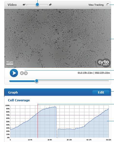 CytoSMART攝制的Video、按照圖片分析出的細胞覆蓋率時間曲線