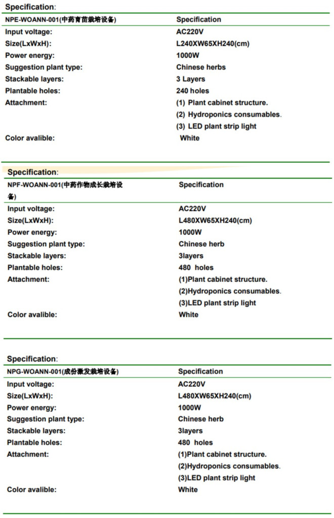 2. Includes: 2-1)Plant cabinet structure. 2-2) LED plant strip light. 2-3) Hydroponics consumables. 2-4) Nutrient solution.