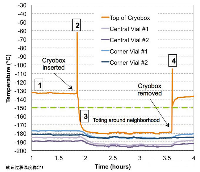 生物樣本的轉運與存儲需要足夠的深低溫凍存環境才能保證安全存放,因此存儲過程溫度對生物樣本的安全至關重要!凍存樣本必須保存在溫度低于-130℃才能防止酶促反應,溫度每升高7.8℃,低溫保存的樣本中代謝反應風險就可能增加一倍!溫度高于-130℃,樣本質量降低風險加劇,如果在轉運過程發生,那么臨床轉化治療的結果可能功虧一簣,甚至造成醫療事故災難性風險。